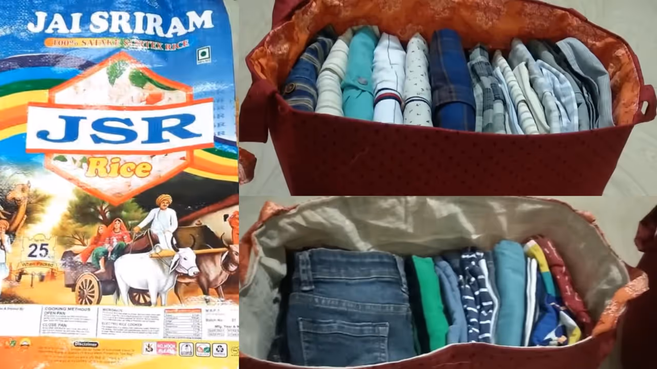 Home Hacks: ప్రతీ ఒక్కరి ఇంట్లో ఖాళీ బియ్యం సంచులు ఉండడం ఖాయం. ప్రతీ నెల బ్యాగు కొనుగోలు చేస్తుంటాం. అయితే ఖాళీగా మారిన బియ్యం సంచులను పడేస్తుంటారు. కానీ తెలివిగా ఆలోచిస్తే ఈ బ్యాగులతో అందమైన బ్యాగులను రడీ చేసుకోవచ్చు. అదెలాగంటే..